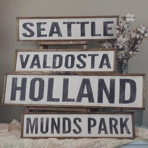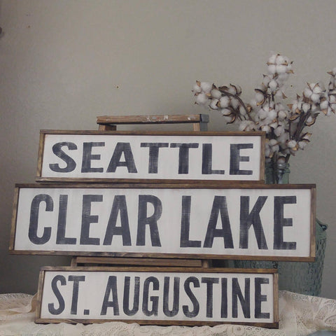 This sign can be customized with the city or state name of your choice. Once you have submitted your order, just send us a message with your requested text.